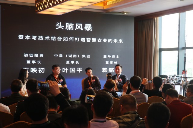 接著,初創投資董事長王映初、中墾(湖南)集團董事長葉國平、壹號資本董事長賴銘圳、常鋒無人機CFO方丹青以“資本與技術如何結合才能打造出智慧農業的未來”為題,在發布會現場給大家帶來了一場頭腦風暴。