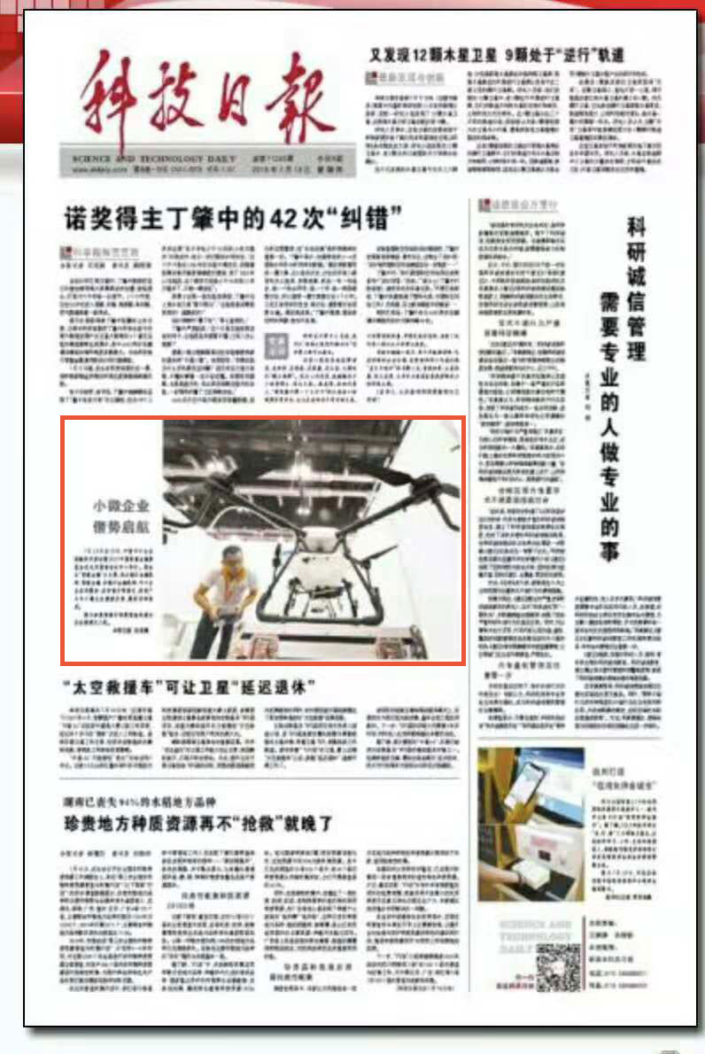 7月19日,中央主流新聞媒體《科技日報》以《小微企業借勢起航》為標題報道了受邀參展第六屆中國中小企業投融資交易會暨2018中國普惠金融展覽會的常鋒農業植保無人機。